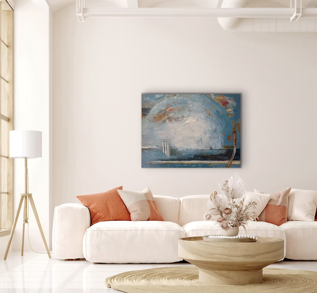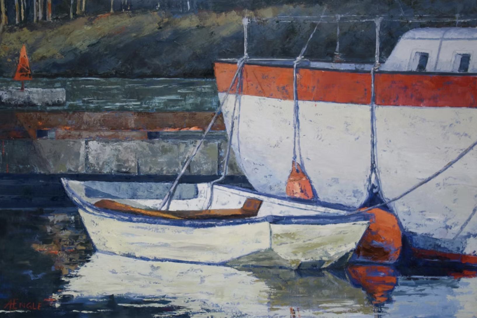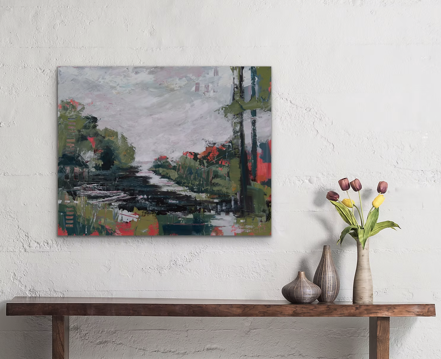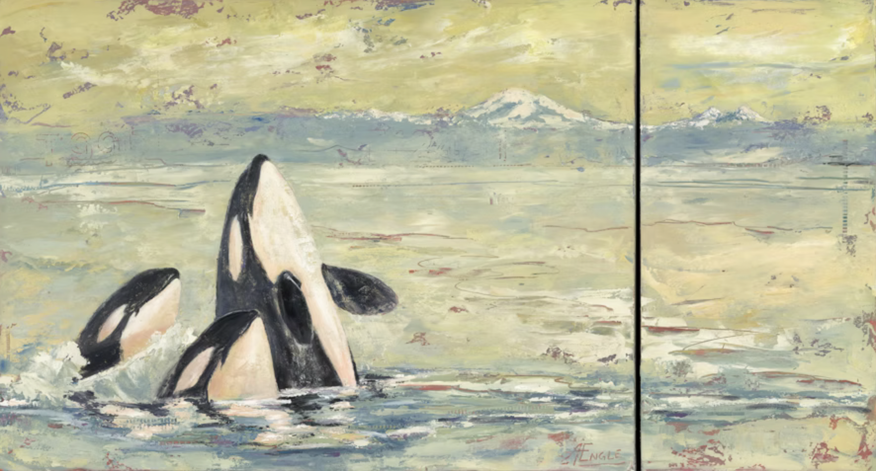 I live on a beautiful island at the center of the Salish Sea in Washington State. Many of my paintings are inspired by things that can be found at the water’s edge. A coastal beach at low tide, a marine mammal, a wetland, or the hull of a boat I find in the harbor. My work is rich with color and texture and often borders on the abstract. When I start a painting I often have no preconceived idea of how it will turn out. The layering of texture, shapes and color can bring about the most unexpected results.