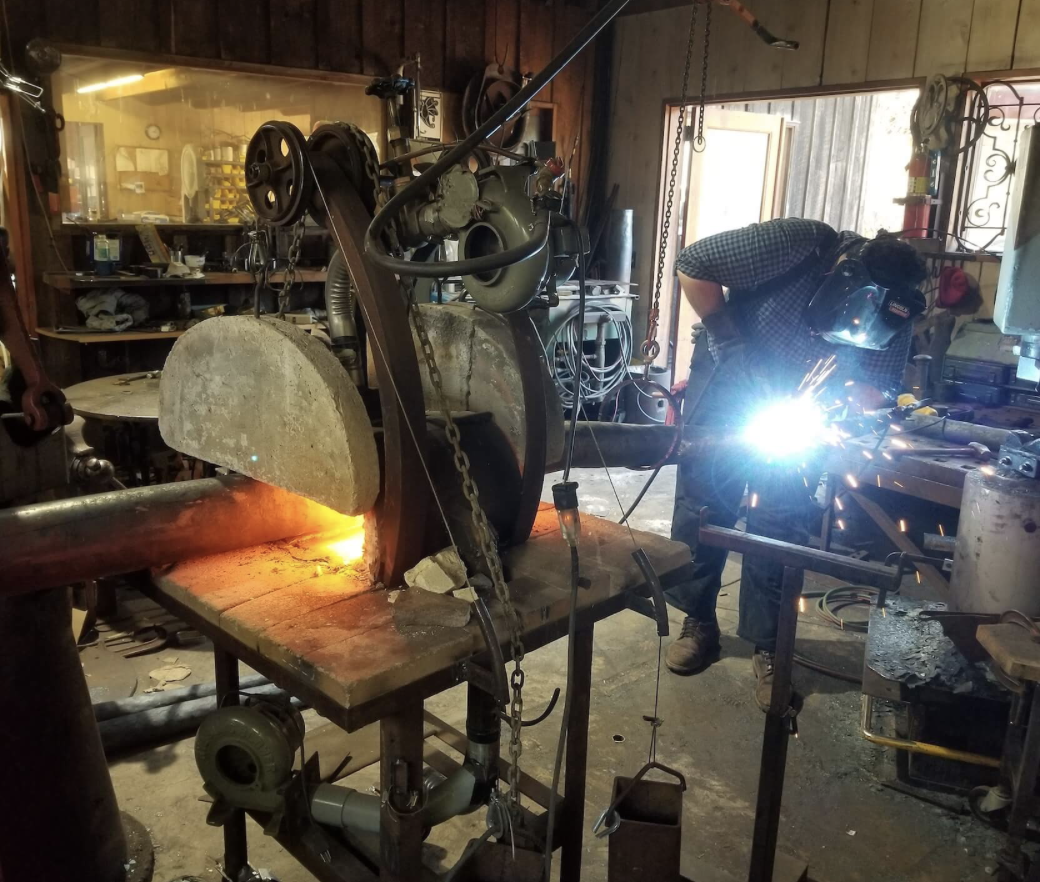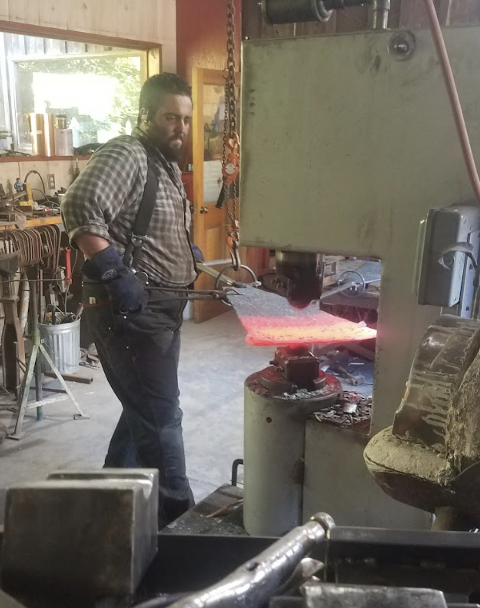 Emmett Pearsons, the maker behind Copper Droplets, uses his skills as a blacksmith and metal worker to repurpose and shape both new and reclaimed material into creative custom projects. The process of shaping the material and figuring out the different ways to manipulate and alter the glowing steel is a wonderful, challenging experience for him.