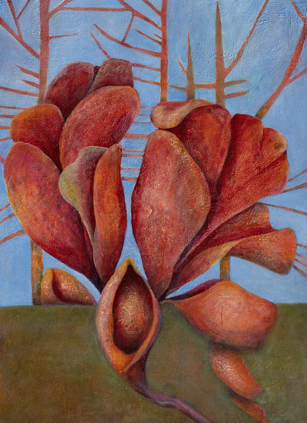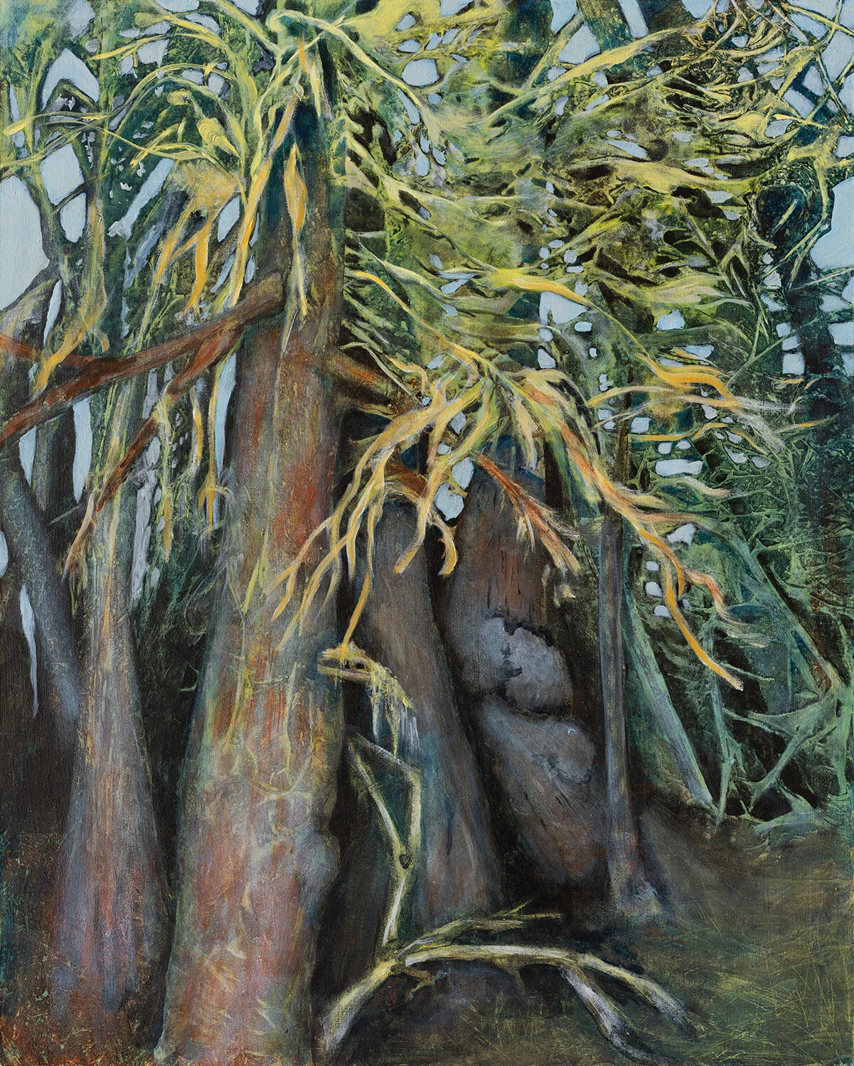 Gretchen Allison is an artist who lives and works on an island in the Pacific Northwest and also spends time in tropical Central America. Her paintings reflect the colors, textures and forms of her varied environments and often lean toward surrealism. She is represented by the online gallery Saatchi Art.