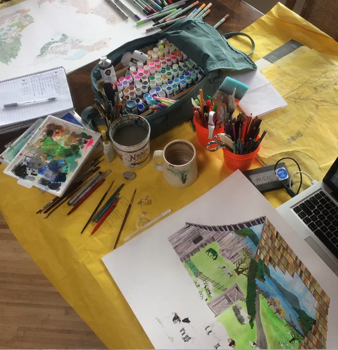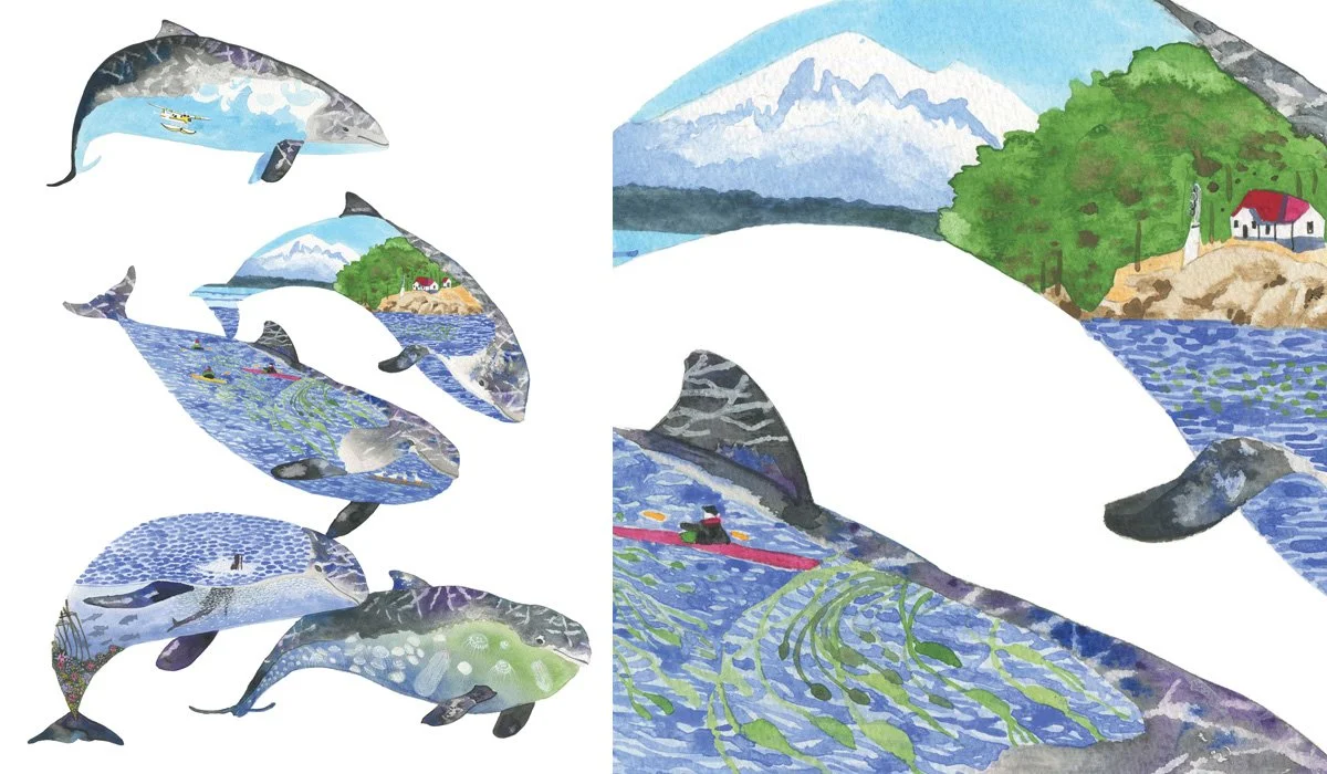I live and travel among the islands in the Salish Sea, an intricate network of coastal waterways that stretches from British Columbia to the Pacific Northwest. Here among the temperate rainforests I take on odd jobs, go on quiet nature-infused adventures, and create artwork that combines illustration, photography, animation and the temporary arrangement of local plants, mushrooms and other found items.