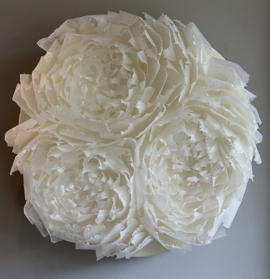 Artist Kandis Susol works out of her studio known as Jakuan (Arbor of Tranquility), located on remote Orcas Island, where she creates her encaustic paper sculptures as a form of spiritual practice. Inspired by her study of garden design in Kyoto, Japan; practicing tea ceremony at Shoseian in Seattle, Washington; her study of Zen Buddhism, and a Fiber Arts Major at the University of Washington for 2 years, she is wholeheartedly present in the moment when she works. Drawing on inspiration from the natural world, she is infusing each piece with a meditative quality and materials representing all four earthly elements: water, air, fire and earth.