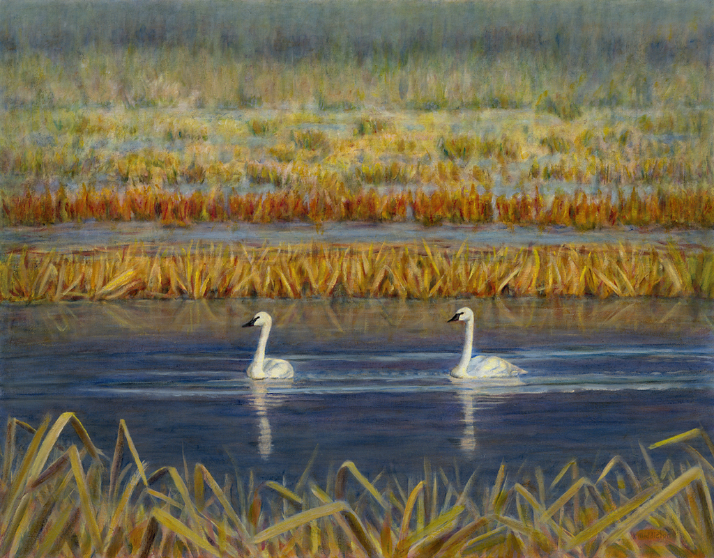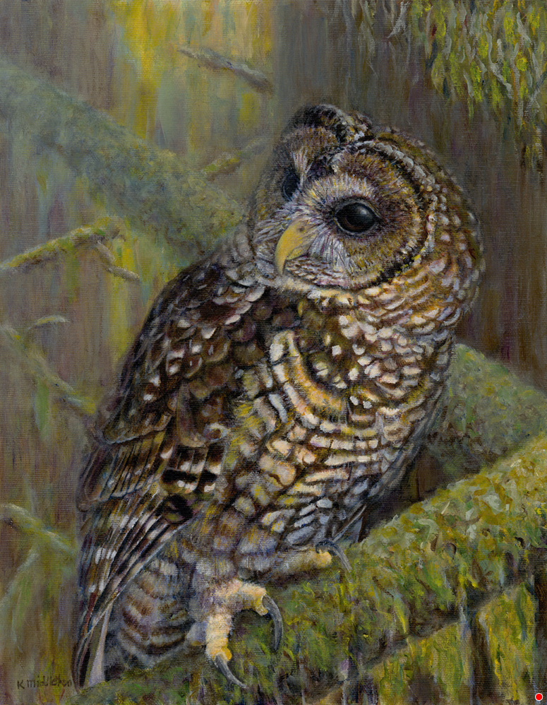 The avian art of Kim Middleton portrays birds in a different light. Her ornithological work gives Kim unique insights into birds, which she embodies in her art. Kim’s paintings reveal the understanding she has achieved through her life-long work with birds as a biologist, wildlife rehabilitator, bird trainer and bird watcher.