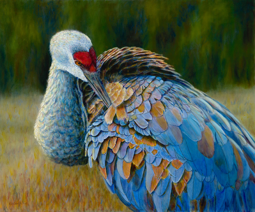 Kim applies watercolor glazing techniques, using a limited palette of transparent oil paints, to achieve rich, luminous works that showcase the beauty and splendor of birds. A close inspection of her paintings reveals the wide range of colors produced as light penetrates and reflects through the multiple, thin layers of oil paint.