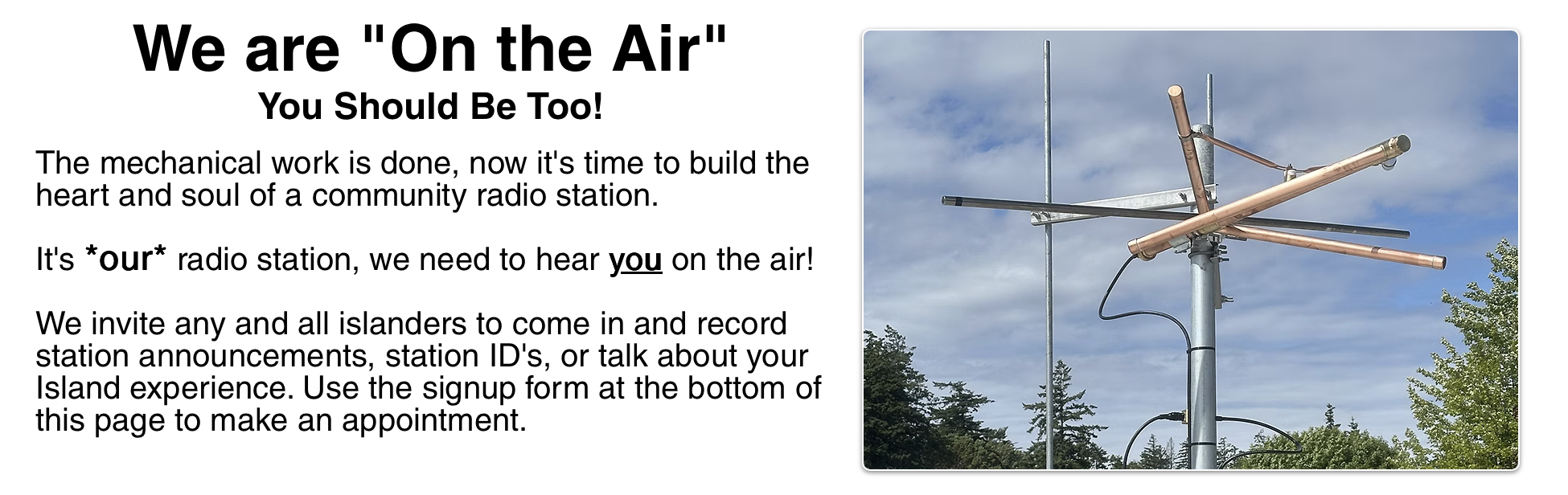 As a community radio station we work to expand local artist outreach, bring new and exiting music to the Islands, and train community members in the art of broadcasting