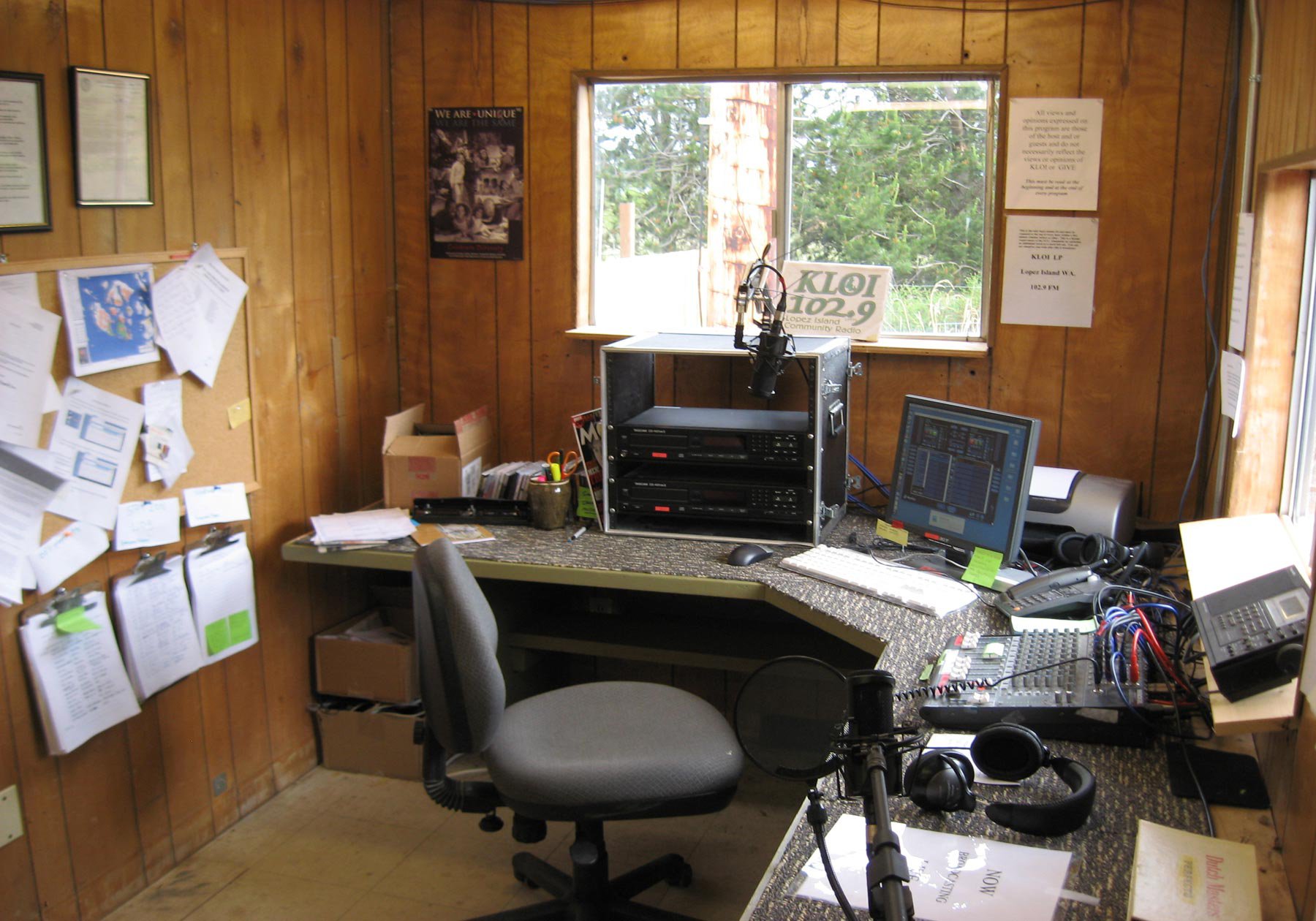 Our Low Power FM station serves Lopez Island, Washington. We operate on 18 watts at 102.9 broadcasting and webcasting from Center Road in the middle of the island. KLOI is owned and operated by GIVE (Gathering Island Voices and Expressions) the sponsoring non profit organization, a Board of Directors and countless volunteers. We began broadcasting live in April 2008.