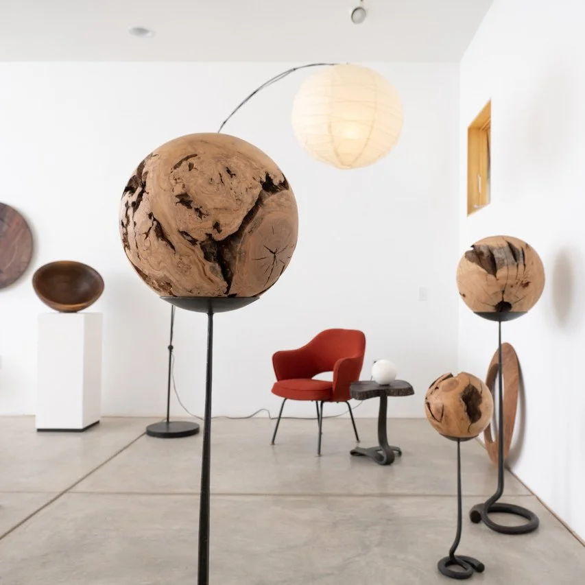 I transform fallen, diseased and unwanted trees into sculptural objects and to works on paper. You’ll see piles of logs, root balls and gnarled limbs surrounding my studio. As I roll them around to study them, I wait patiently for my inspiration to be provoked – as if the tree itself may speak to me! I make exploratory cuts trusting that I will stumble upon what form will best express this tree’s inner beauty.