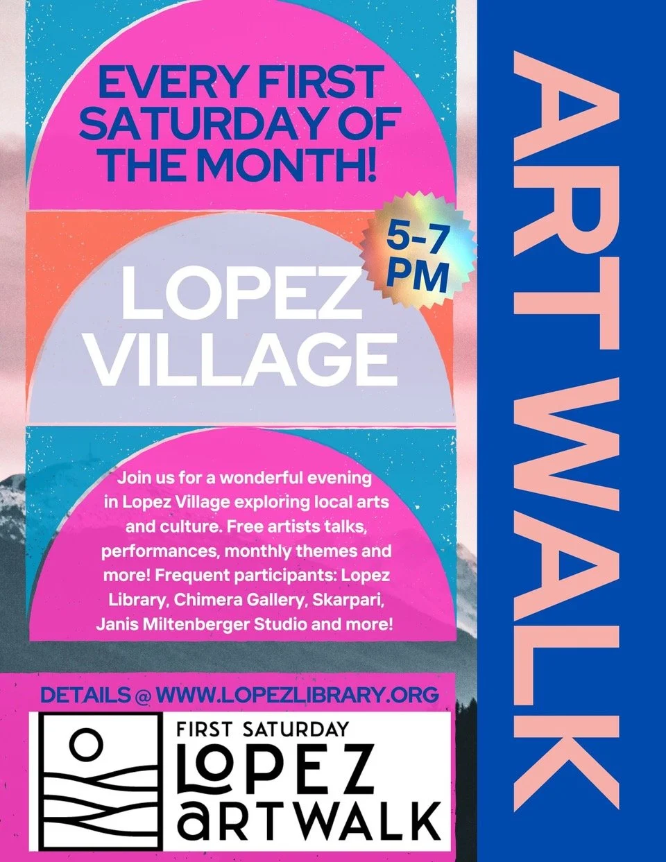 Local artists and businesses are the generative center of Lopez arts and culture, and are at the center of the new monthly community event, First Saturday Art Walk. These Art Walks offer a free and easy opportunity to enjoy the arts on the island while mixing and mingling with new and old friends.