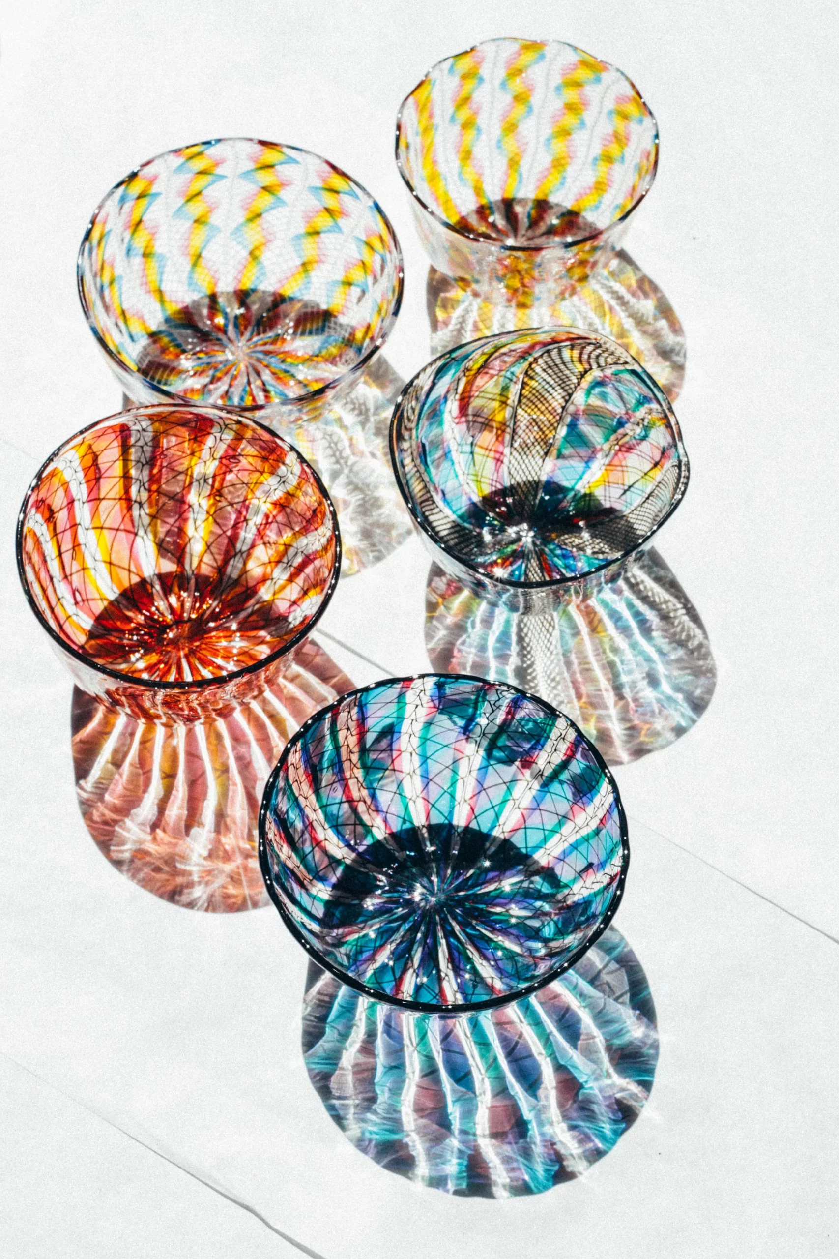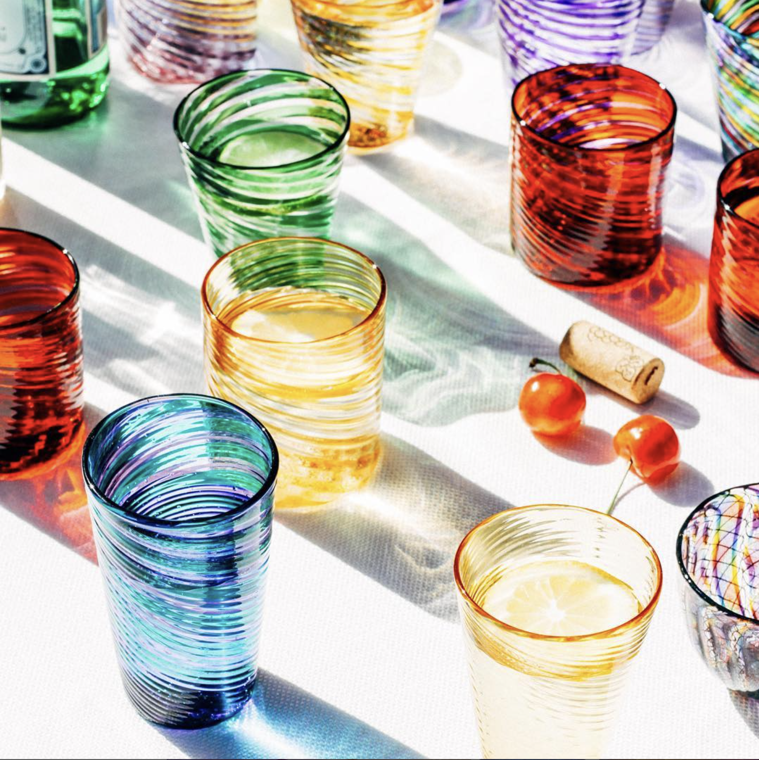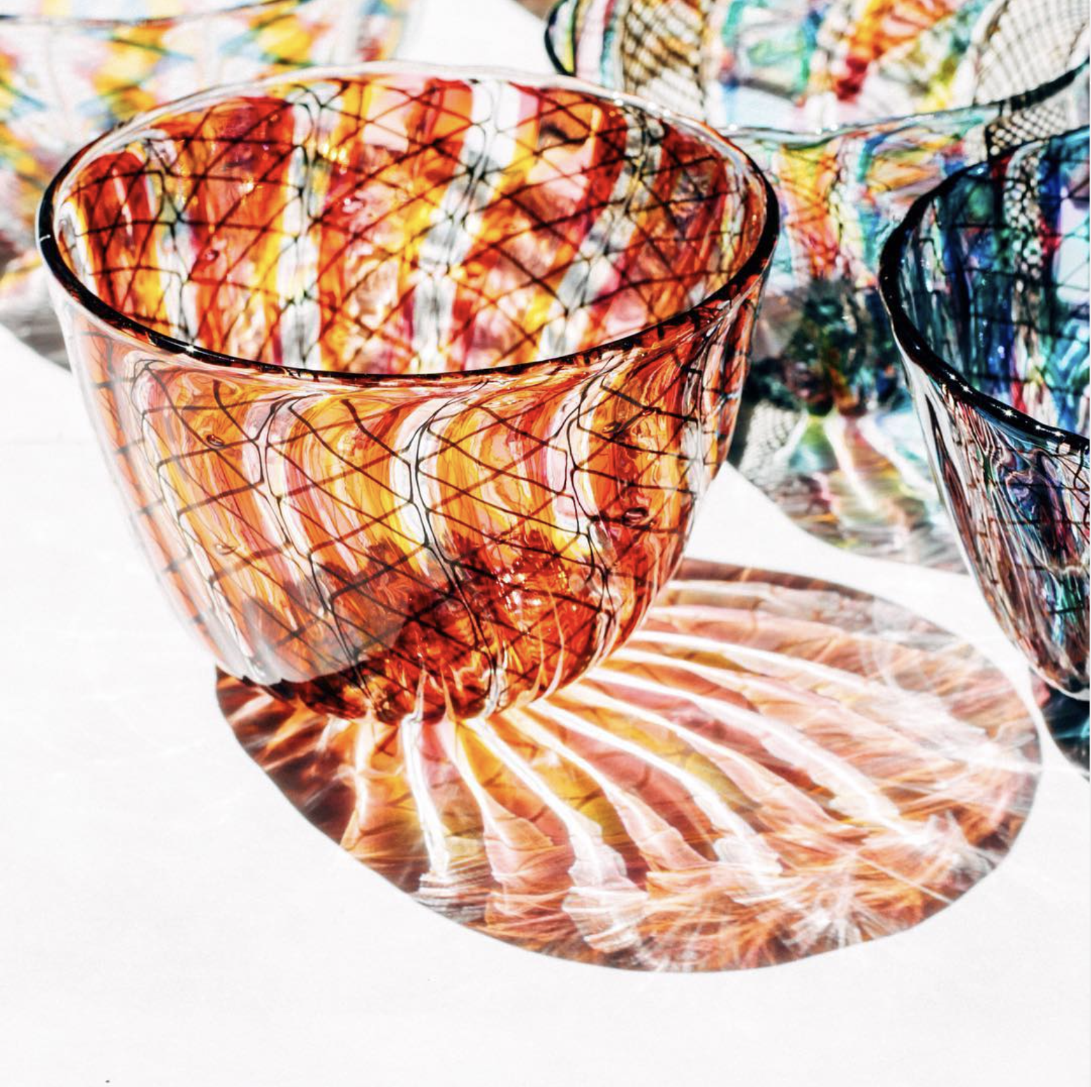Olive Glass is a collaboration by artists Lark Dalton and Corrie Haight. Started in 1984, Olive Glass has continued to create contemporary handblown glass focused on color, pattern and function. Their pieces range from delicate glass beads, to functional and matched glassware.