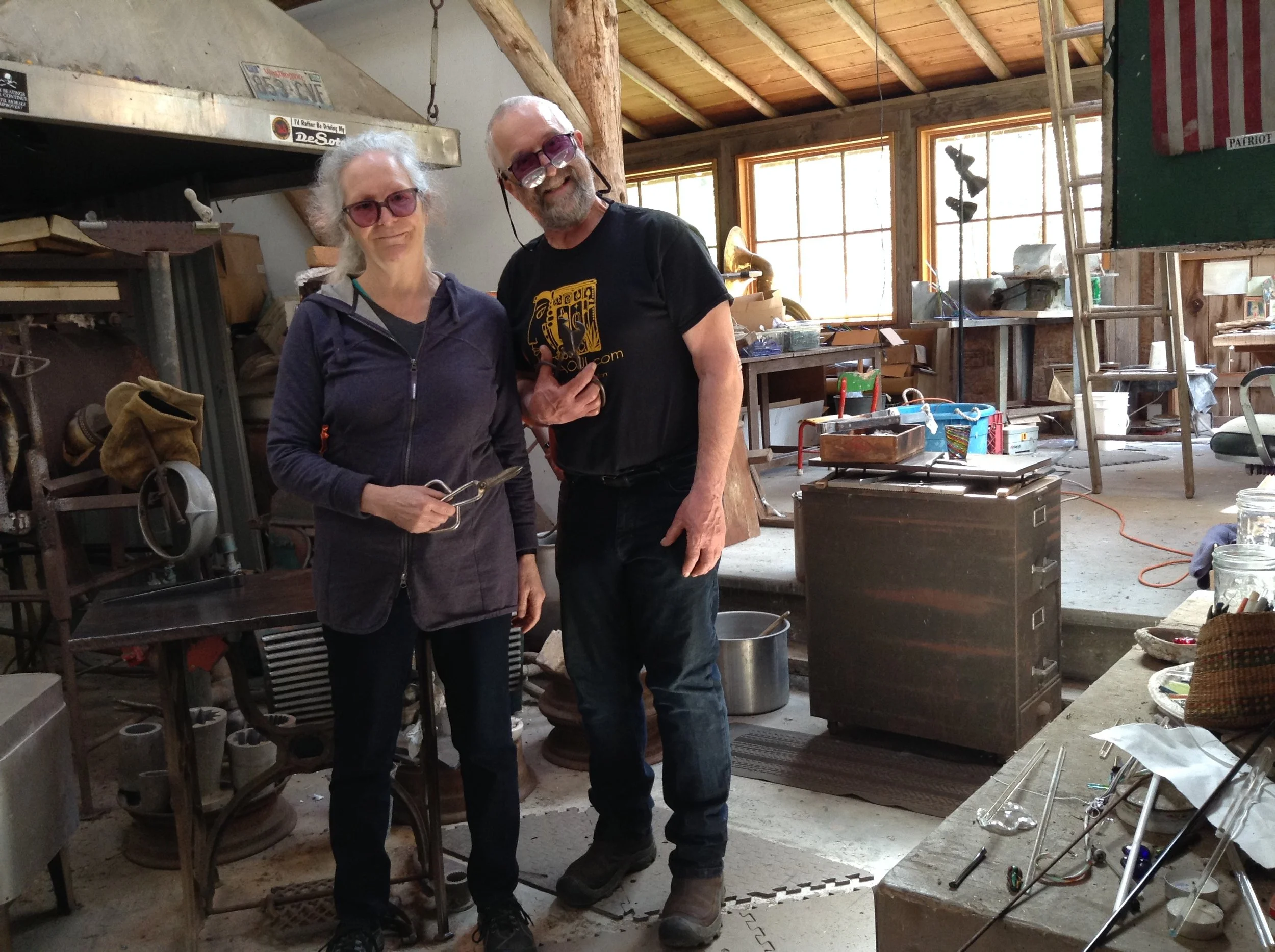 Lark and Corrie create their glass work out of their hand-built studio in the woods on Lopez Island, Washington. Their hot shop is a one-of-a-kind environment filled with character, color, skill and history.