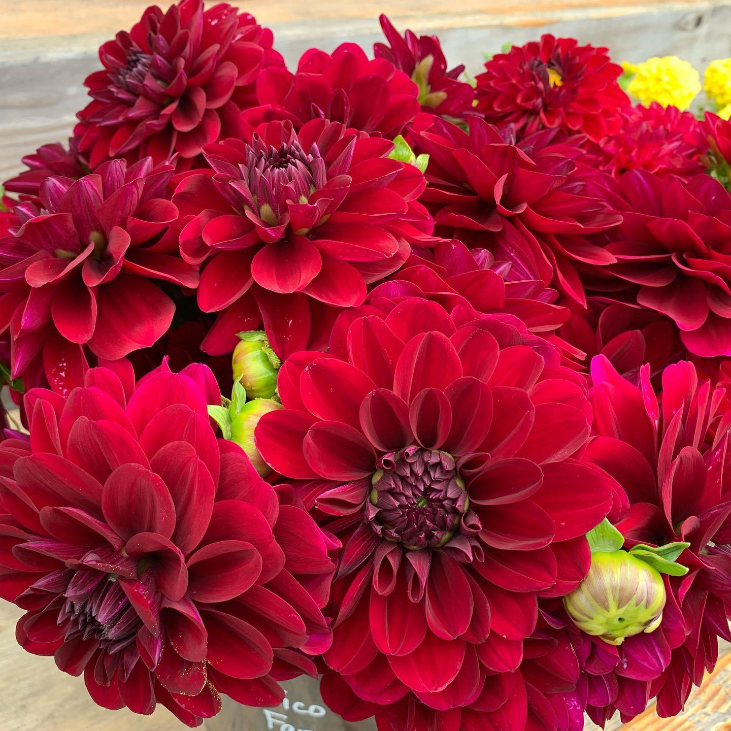 Beautiful Island Grown Dahlias available at our farm store. Open seasonally 9am-6pm, 146 Wood Duck Lane. Offering create-your-own (by the stem) bouquets or choose from our hand-crafted prearranged bouquets that are ready to grace your home, table or next event.