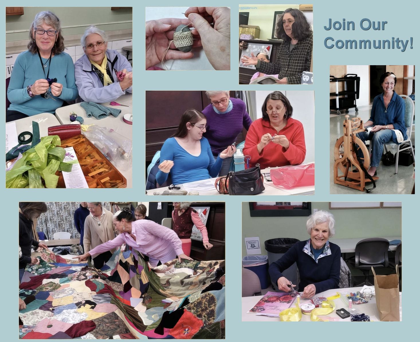 Our guild includes members with all levels of expertise, from beginners to professionals. We learn from each other as well as from nationally renowned teachers, designers, and fiber artists.