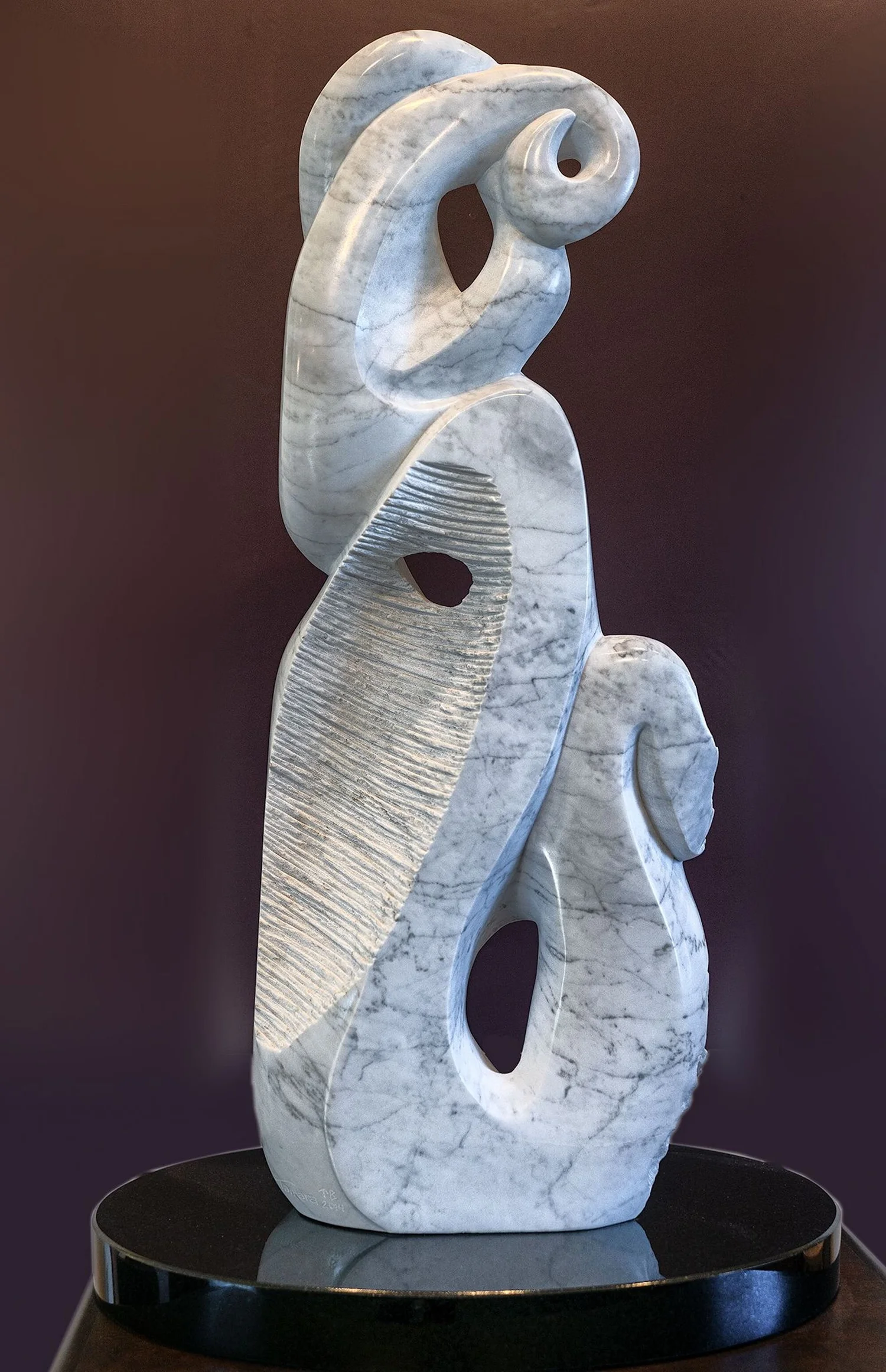 Preferring to work with organic forms, her sculptures may be either representational or abstract. Each stone is different and each stone leads to a unique piece of art. Her work ranges in size from pieces small enough to hold in one’s hand to monumental pieces designed for public spaces. Tamara sculpts in granite, marble, limestone, and basalt. “My life, who I am as a woman on earth, emerge before my eyes, as I remove the stone to see what’s inside.”