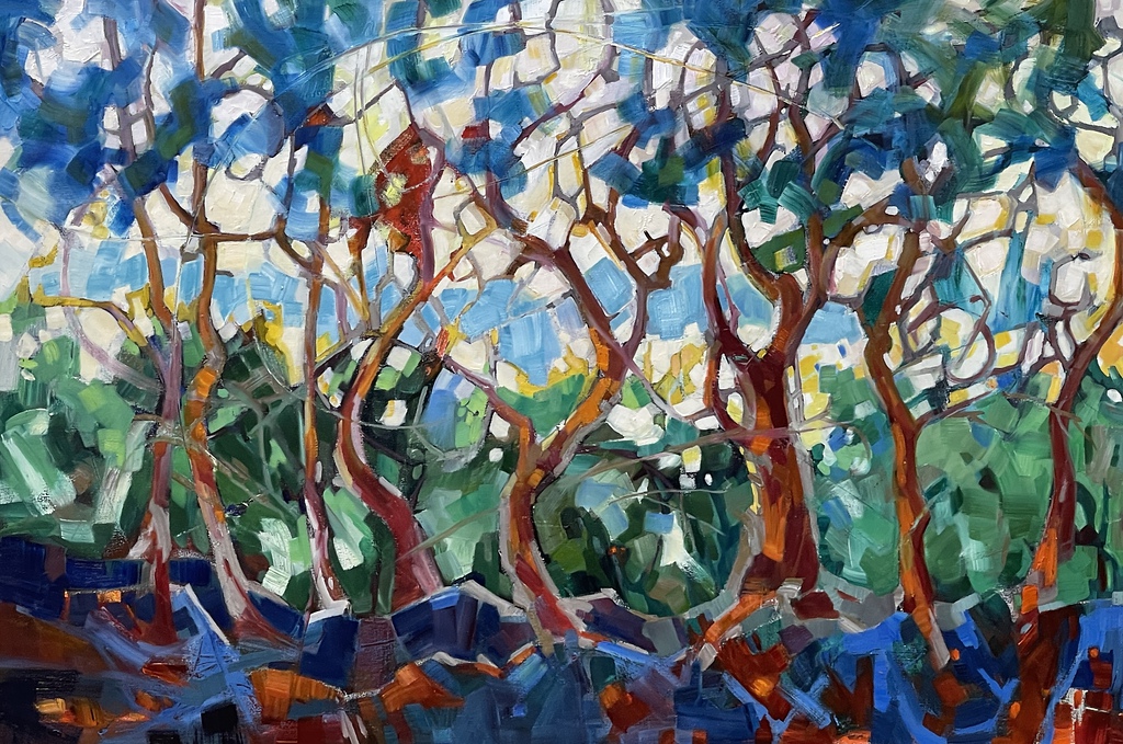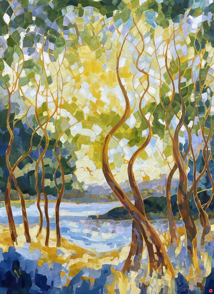 Influenced by Tom Thomson, Emily Carr, The Group of Seven, and Brian Rutenberg, she paints the soul in nature.